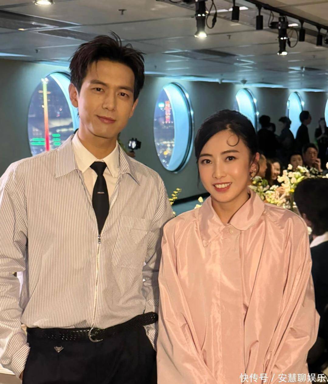 甘比晒与郑秀文李现合照,穿粉衣气质温柔,姿态不够舒展大气